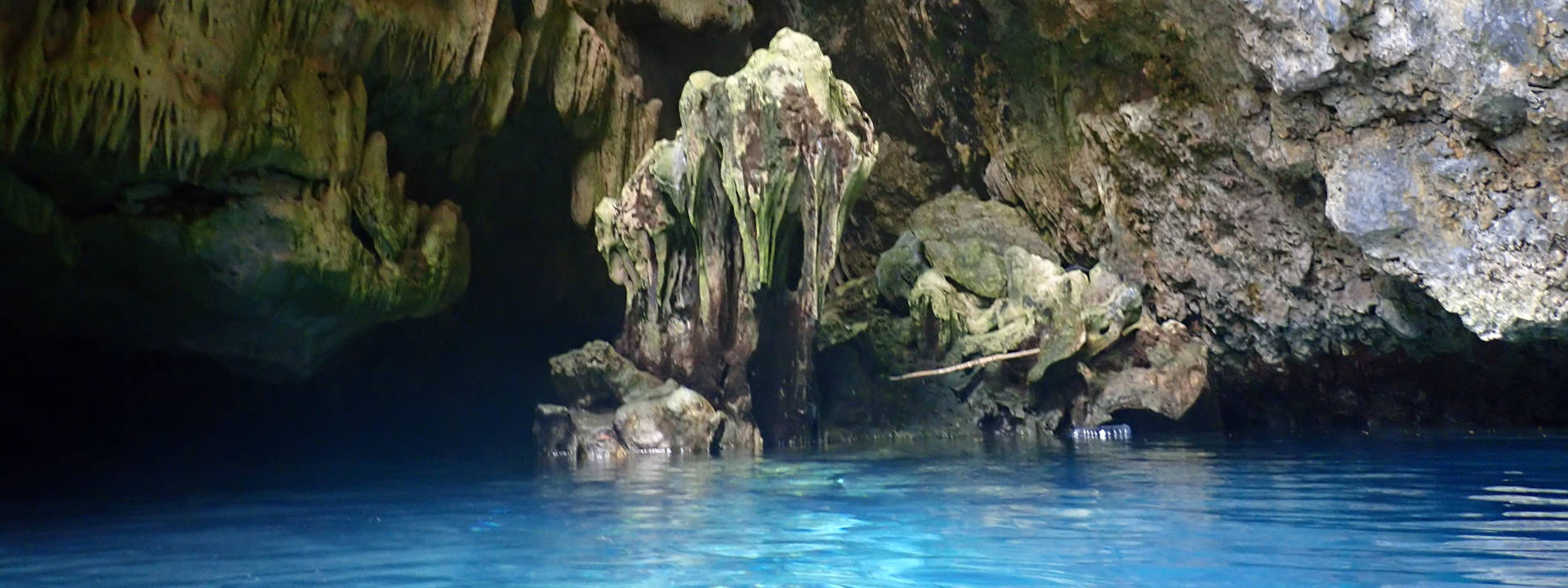 Ce que les gens ne savent pas, c’est que l’archipel est constitué d’un ancien récif coralien et que les 4 îles reposent sur un lit calcaire. Par conséquent, la roche étant molle et poreuse, l’eau douce a pu s’infiltrer sous terre et créer un vaste réseau de grottes sous-marines. Toutes les villes, sont construites autour de ces gouffres et offrent un accès de surface au réseau souterrain, permettant à la population locale et aux voyageurs d’échapper au soleil brûlant et de se baigner dans l’eau douce.